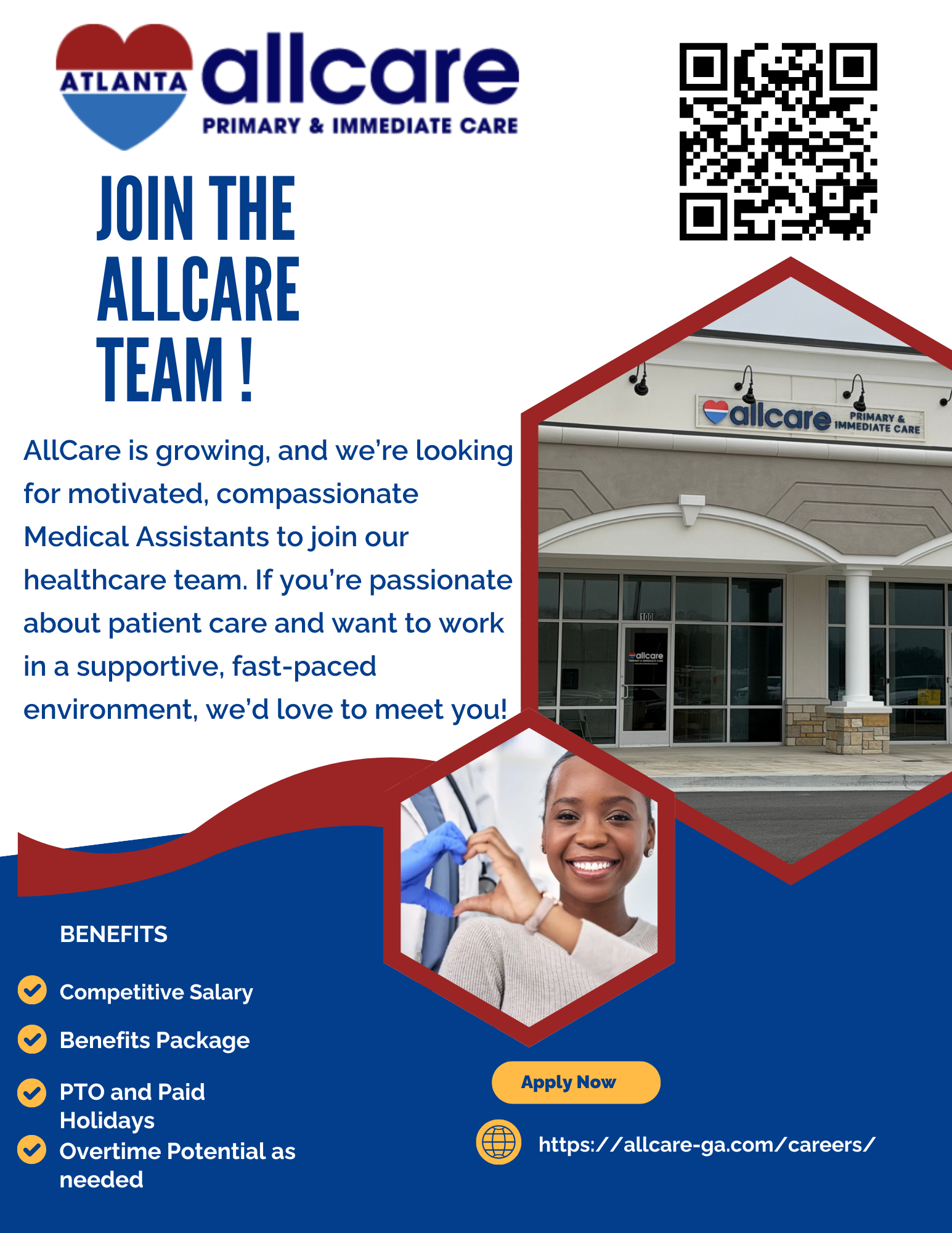 At AllCare Primary & Immediate Care, we are committed to supporting your professional growth, fostering collaboration, and ensuring that you have the resources and support needed to thrive in your career.